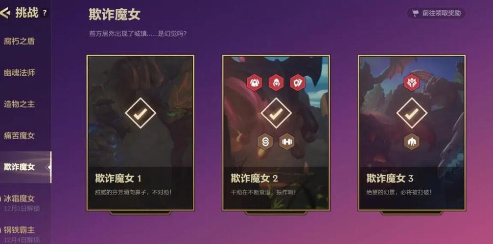 〖One〗、要完成云顶之弈中的魔女任务,需要分别通关痛苦魔女、欺诈魔女和冰霜魔女这三个关卡。以下是每个关卡的完成策略:痛苦魔女 第一关: 装备:合成“汲取剑”和“最后的轻语”,装备给卢锡安。
