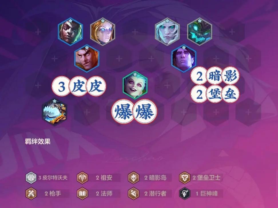 阵容羁绊搭配:斗枪阵容的羁绊搭配非常关键,主要包括1机器人、6斗士、2虚空、2狂野、2海克斯和2枪手。