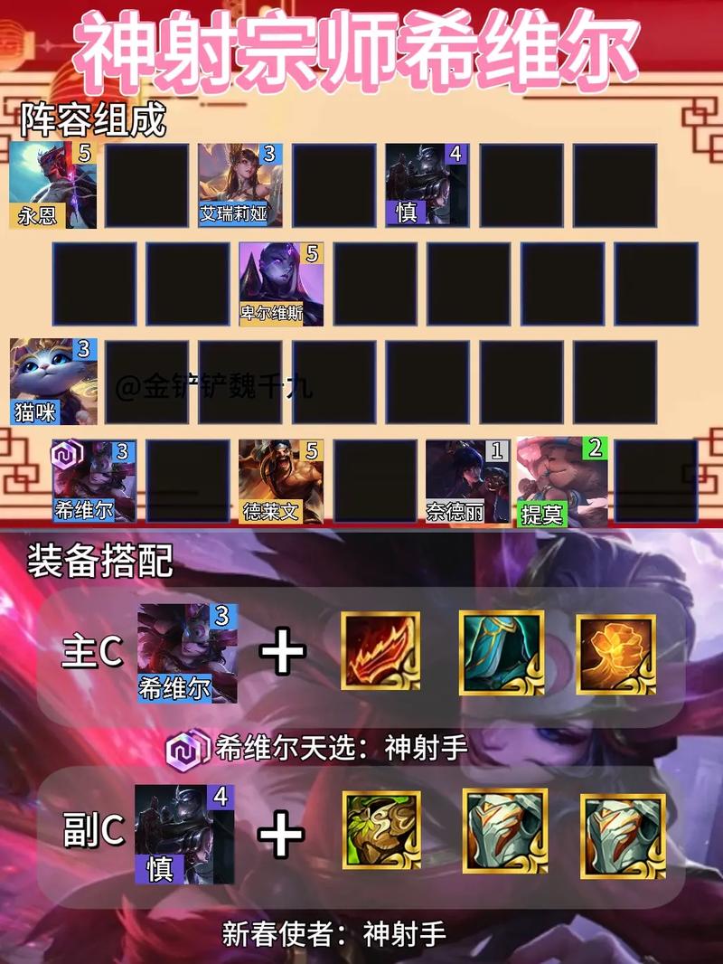 〖Three〗、金铲铲之战S5超英希维尔阵容搭配攻略阵容组成:希维尔+潘森+墨菲特+李青+卢锡安+普朗克+终极伊泽瑞尔+慎。阵容羁绊:5未来战士+3超级英雄+2强袭枪手+2爱心使者。