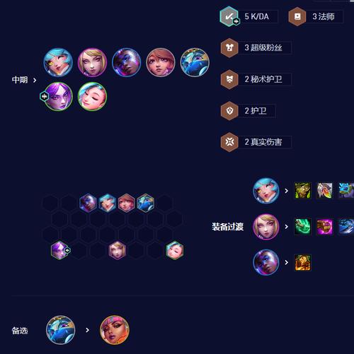〖Five〗、具体羁绊类型:羁绊效果包括骑士、游侠、仙灵、元素师、虚空等多种类型。每种羁绊都有其独特的属性加成,比如骑士羁绊可能增加生命值,游侠羁绊可能增加攻击力等。 游戏回合与羁绊:游戏分为抢装备、野怪和正式对战三种回合。