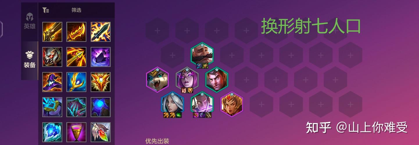 第一套:换形豹女 阵容组成:豹女、纳尔、蜘蛛、乌鸦、妮蔻、希瓦娜、索拉卡。若有玉龙之心或玉龙纹章,可调整为6玉龙+4换形师,或6换形师+怒翼龙(索拉卡未到可挂怒翼龙)。龙女后期可作为副C,提供额外输出。装备分配:豹女:水银(解控)、羊刀(加速输出)、锐利之刃(杀人剑,优先)/巨人捕手/无尽。