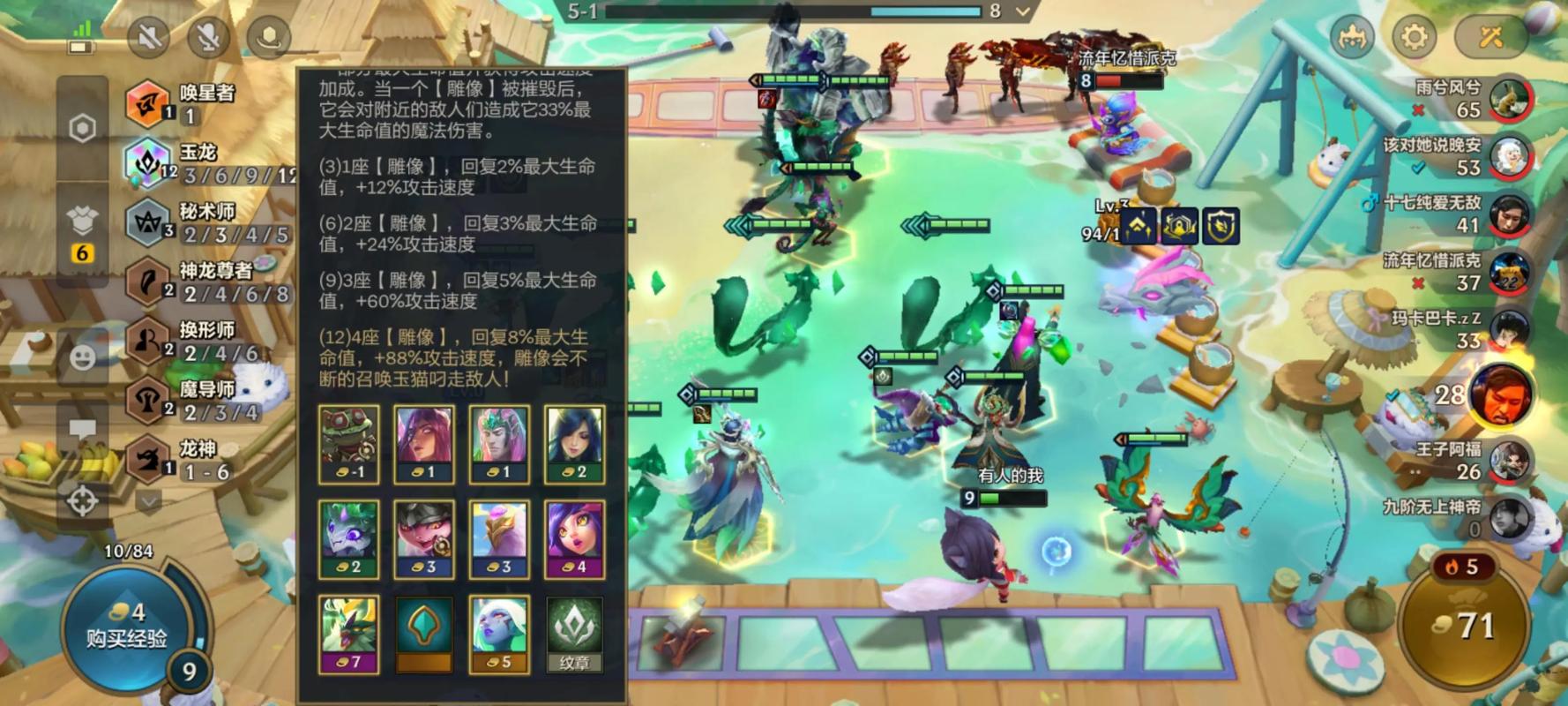 〖Two〗、前期要快速搜三星图奇保住连胜,以健康的血量上人口。装备选取上要优先满足图奇和妮蔻的核心装备。后期要根据对手阵容和自身情况灵活调整站位和装备。这套图奇主C的玉龙阵容在金铲铲之战S7赛季中表现出色,适合用来上分。
