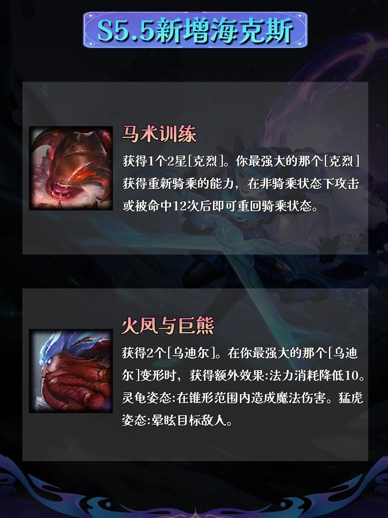 〖Three〗、规律一:当第一海克斯是金符文,第二海克斯是英雄强化时,第三海克斯必定是银色海克斯,此时有概率出现变形重组器。因此,在选秀阶段结束后,要密切关注前两个海克斯的选取,以便及时调整策略。