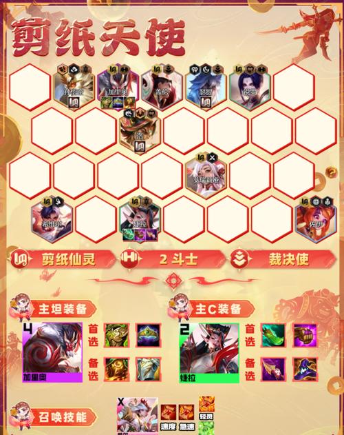 〖Five〗、天使可以搭配攻速装和法强装,以提升其输出能力;前排英雄则需要搭配防御装和生命值装,以提升其生存能力。综上所述,金铲铲之战s11剪纸95阵容具有较高的可玩性和强度,适合喜欢多样化组合和挑战高难度的玩家使用。在实战中,玩家需要根据实际情况灵活调整阵容和装备搭配,以应对不同的对手和战斗环境。